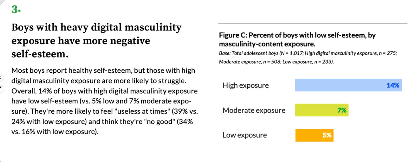 This part matters most: The survey never asked whether boys believed or endorsed the content they saw. It only asked if they had encountered it. Exposure does not equal endorsement.