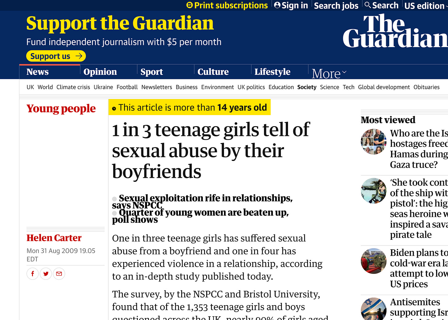 I was a bit taken aback by the article, especially given the recent research on teen relationship violence showing that it tends to be fairly symmetrical — with both boys and girls acting as perpetrators and victims. Yet this article presented a very different picture. It assumed from the outset that girls were the primary victims and boys the primary perpetrators, reflecting an outdated stereotype about domestic violence.