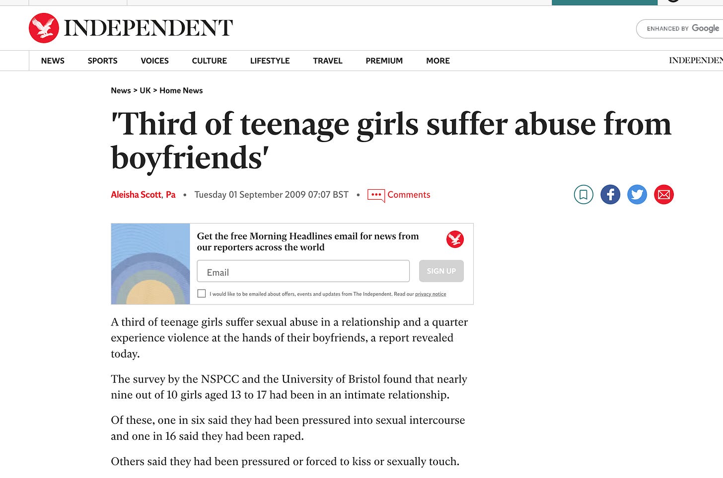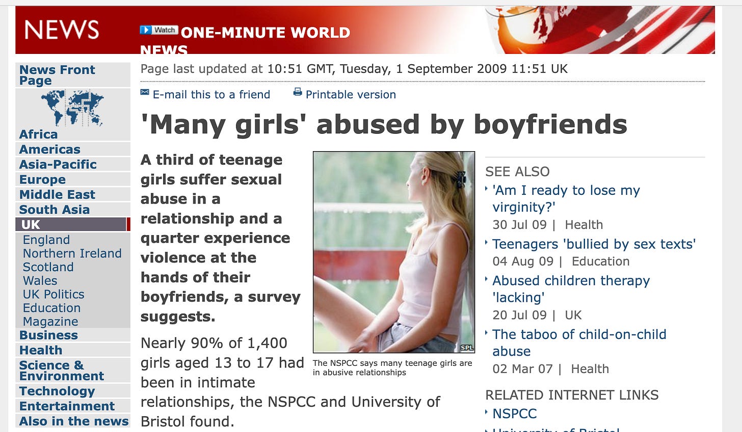 • One in four teenage girls said they had been physically abused by a boyfriend.